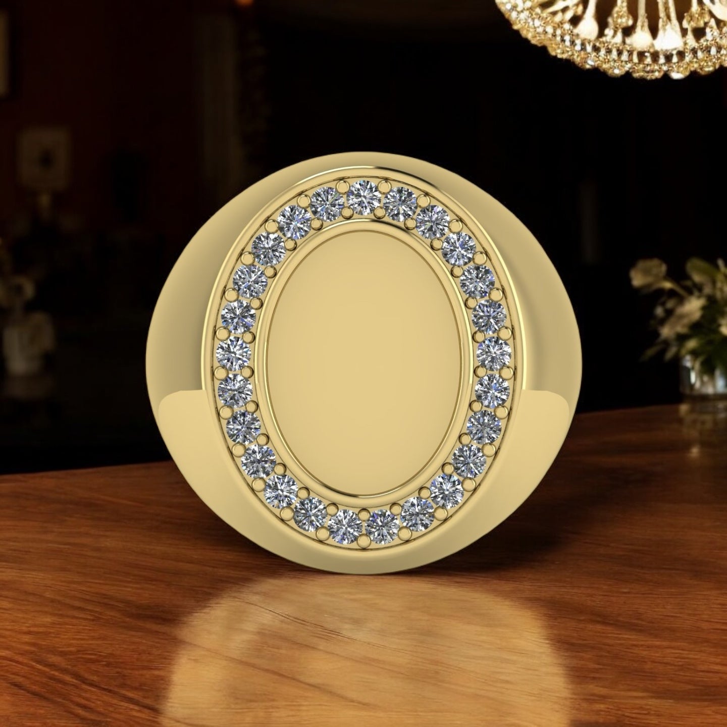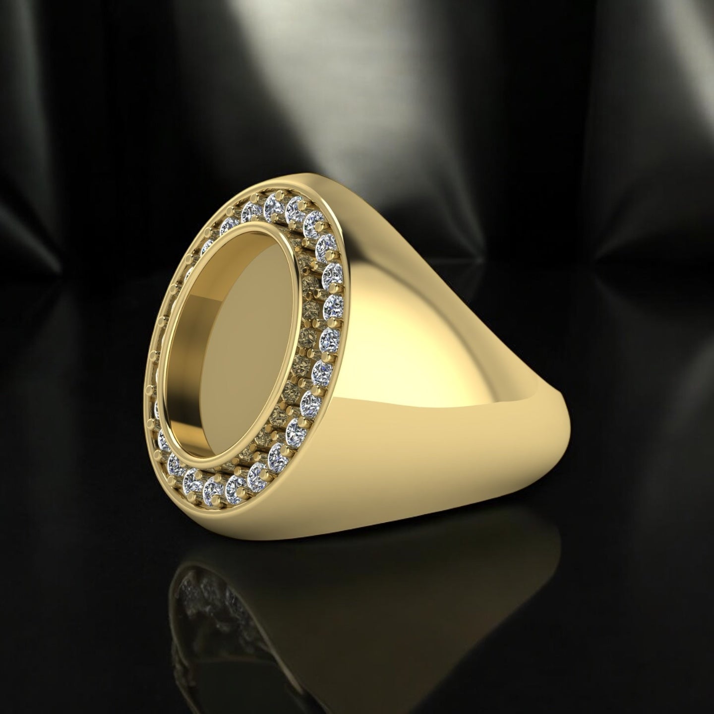 Bold, golden, and impossible to ignore — All Shook Up is a statement piece crafted for those who live loud and love deep. This heavyweight ring features a polished gold finish and a striking halo of brilliant stones, encircling a central bezel designed to hold something meaningful.
