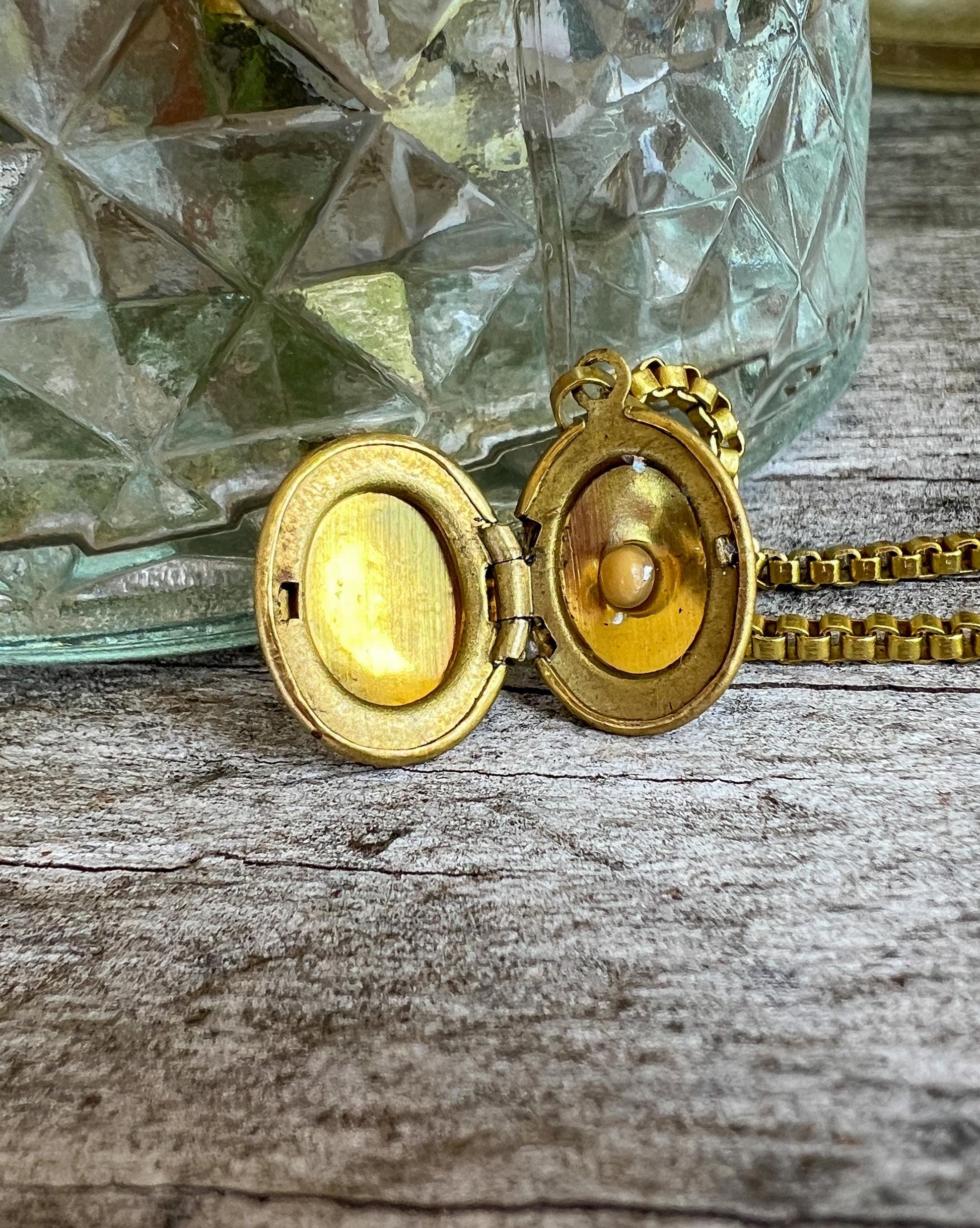 Carry your faith, as small as a mustard seed, with you each and every day with this locket. The locket itself and the chain are "New old stock" from the 70s. The mustard seeds are secured in the locket with UV resin to ensure it never leaves you. Chain: 16" Locket: 11x14mm