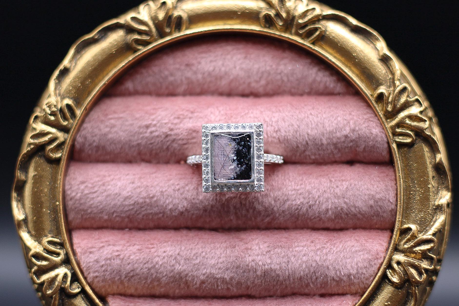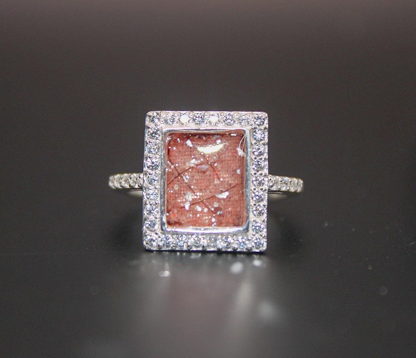 I craft stunning rings that permanently display ashes, hair, breast milk or fabric, allowing you to wear the memory daily with confidence. My rings are made from 925 Sterling Silver and can be coated in your choice of color. After your purchase, please message me for shipping instructions for your ashes, hair, breast milk, or fabric. Upon receiving your item, please allow 1-2 weeks for processing, as I take great pride in crafting each piece with care and attention to detail. Rest assured, any unused materials will be returned along with your finished piece, ensuring transparency and care in the process. Your ring will arrive in an elegant velvet box, perfect for display and storage. Thank you for allowing me to honor your cherished memories through my craft.