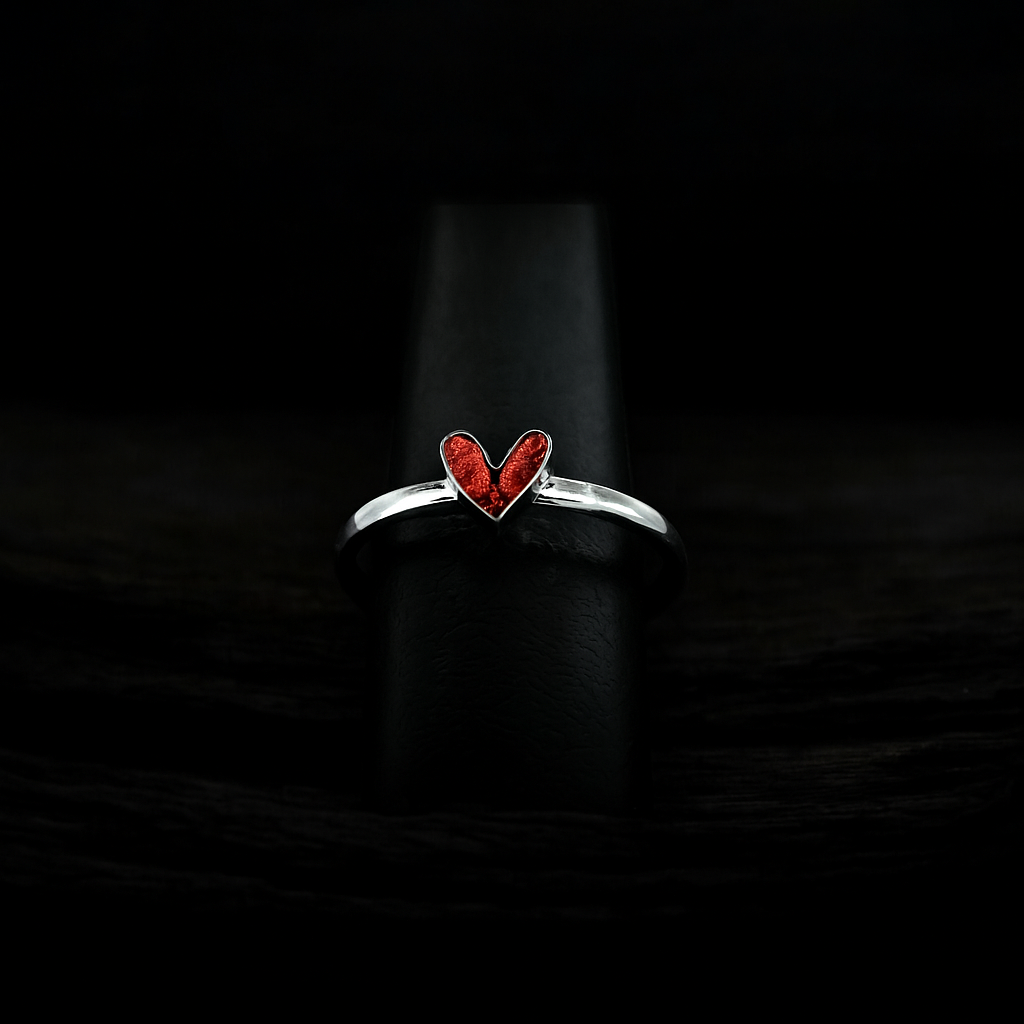 A gentle echo of Southern charm, Tender Melody is a vintage-inspired heart ring that cradles a piece of history. Nestled within the heart bezel lies fabric from clothing once owned by Elvis — a tender keepsake wrapped in love and memory. Each piece softly preserves the spirit of the King in a melody made just for you.