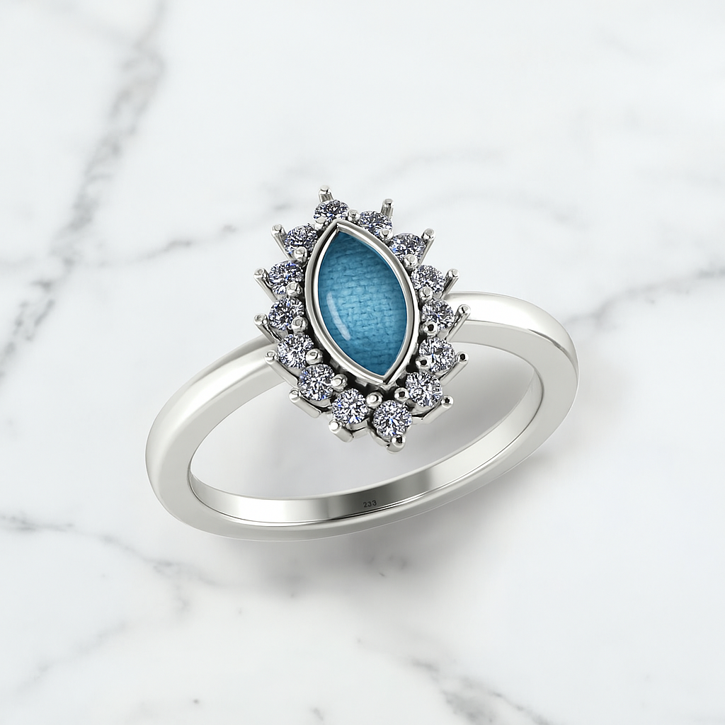 What makes The Memphis Marquise truly special is its historic soul. You have the option to include your favorite swatch of fabric once owned by Elvis, sourced from the original 1971 RCA release “The Other Sides – Worldwide Gold Award Hits Vol. 2,” which included pieces of his personal wardrobe. Each ring comes with a letter of authenticity verifying the origin of the material.