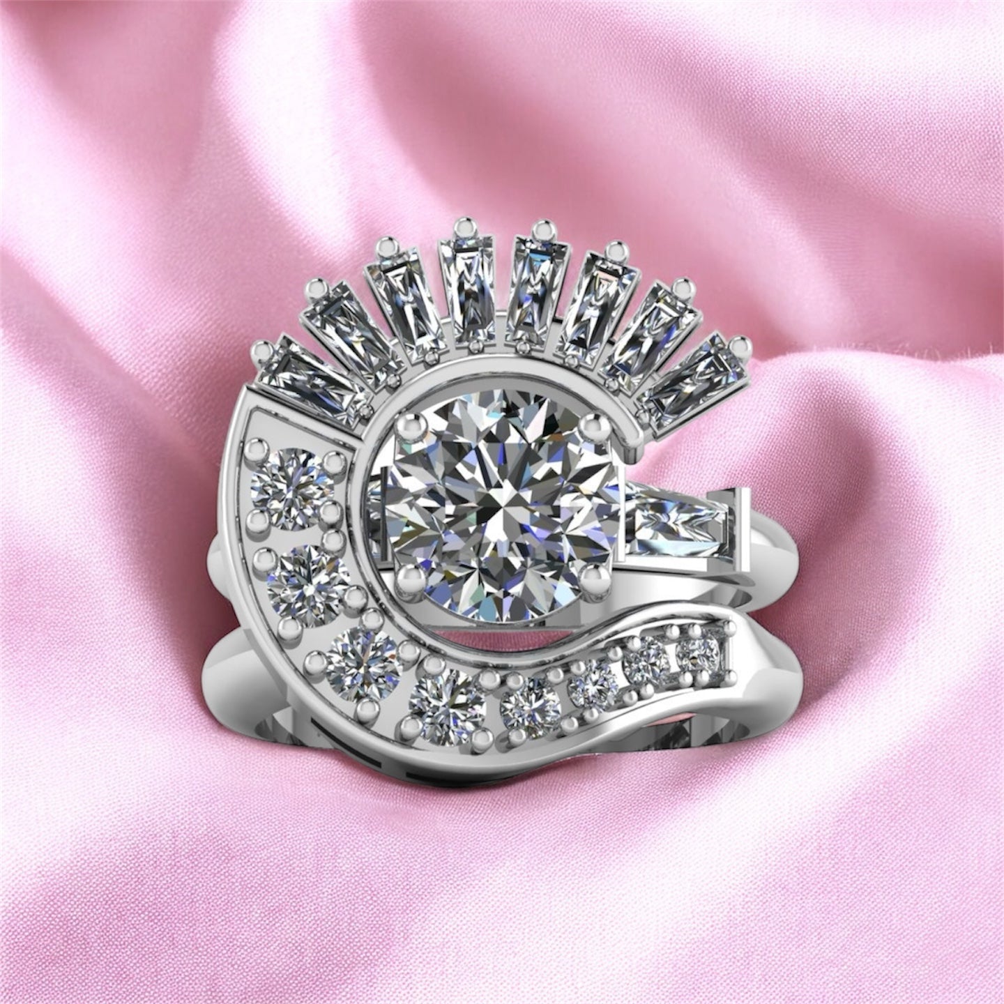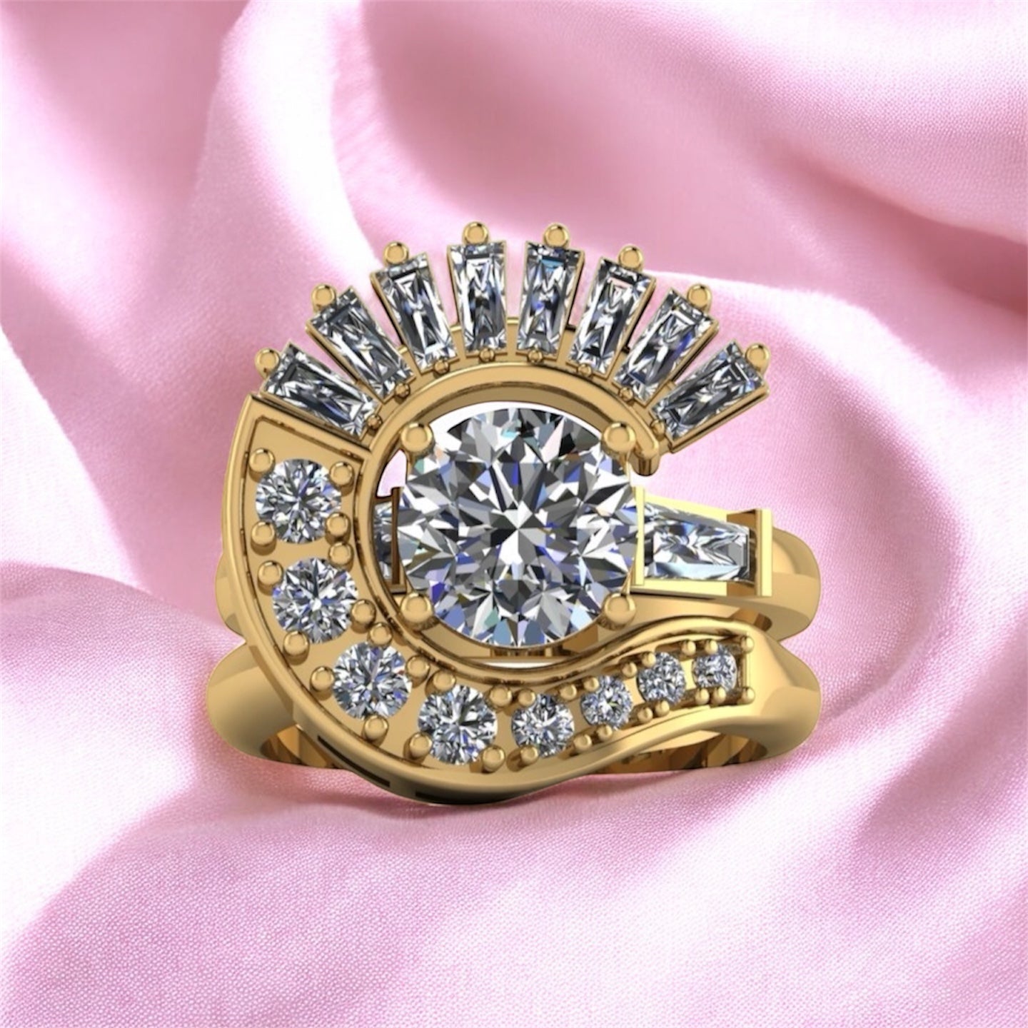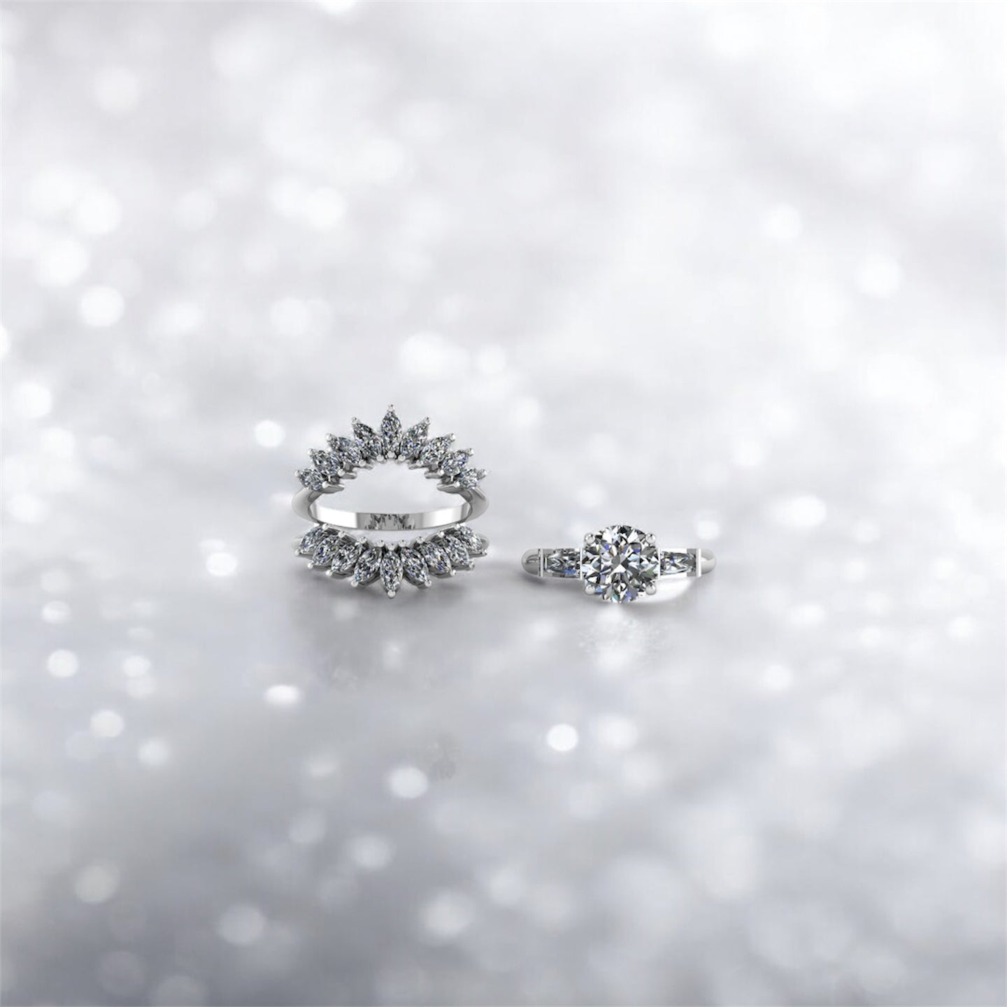 A romantic, interchangeable set designed for versatility and meaning. At the heart of the collection is a classic moissanite solitaire, symbolizing timeless love and celebration. Two graceful wrap bands are available to pair with it—each one hugging the solitaire in its own unique way.