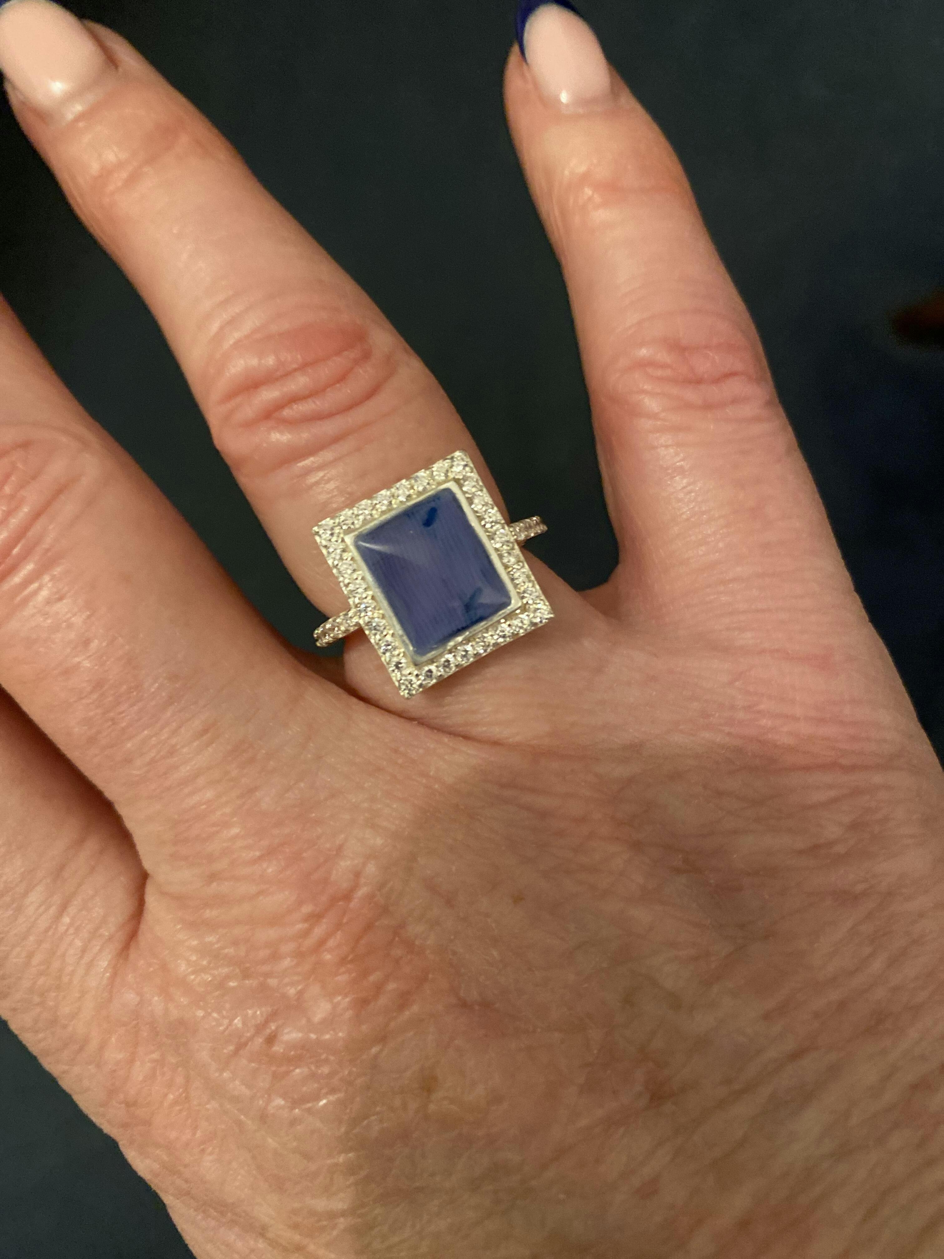 This ring is ready to ship in a size 7 and includes a Letter of Authenticity documenting the scarf’s provenance.