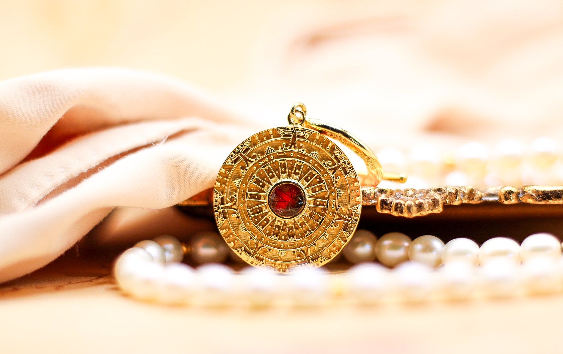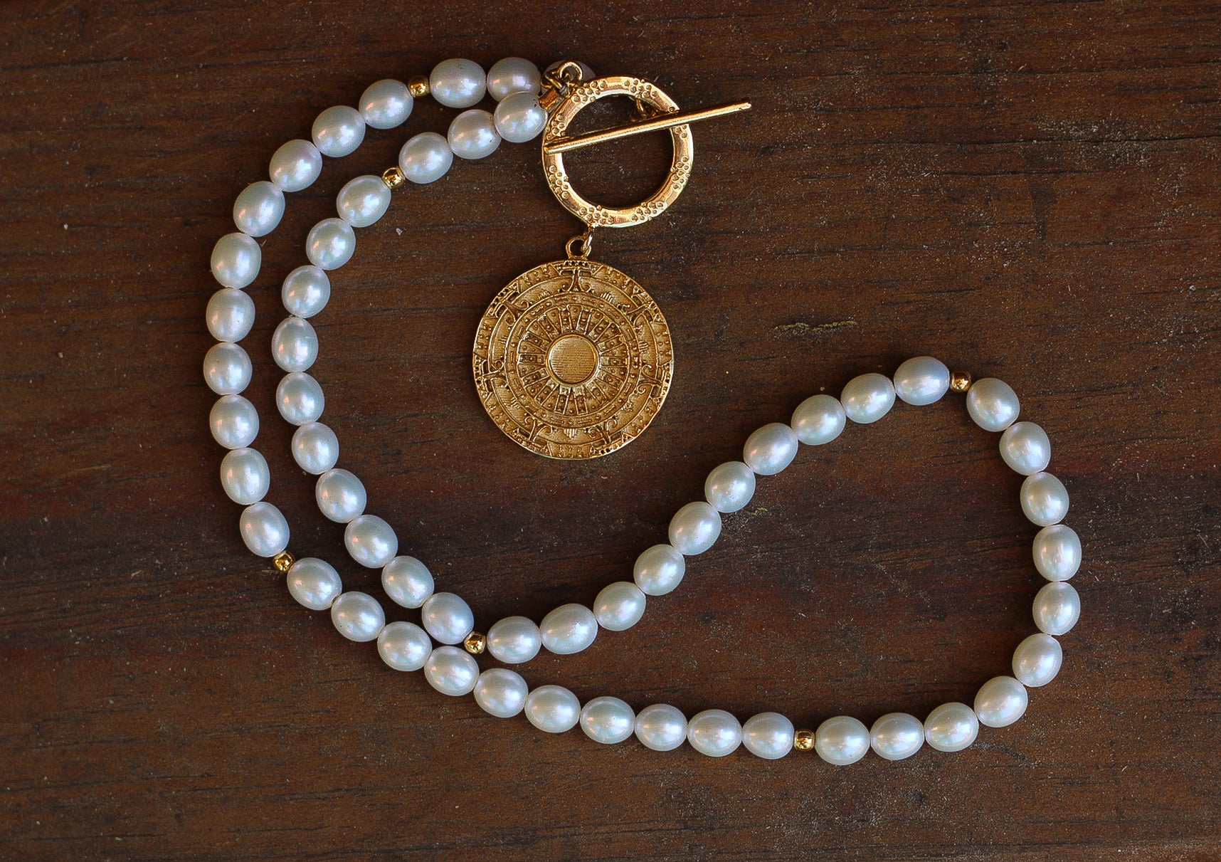 Women's Aztec Sun Freshwater Pearl Toggle Necklace with letter of authenticity