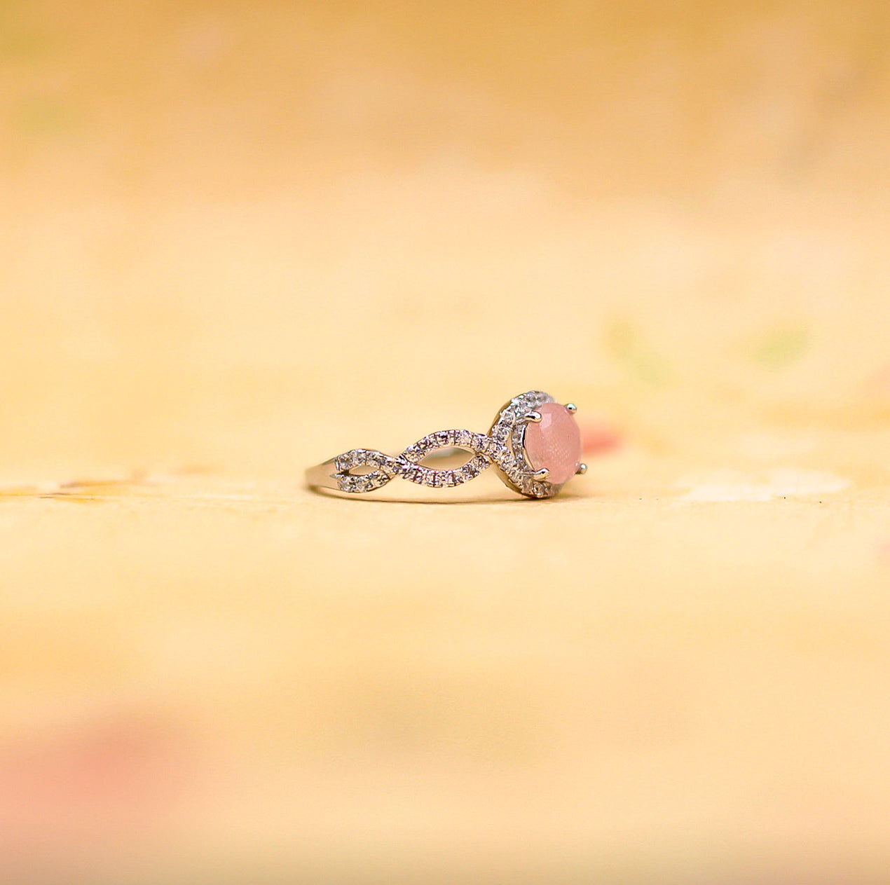 - Infinity band with halo-set stones